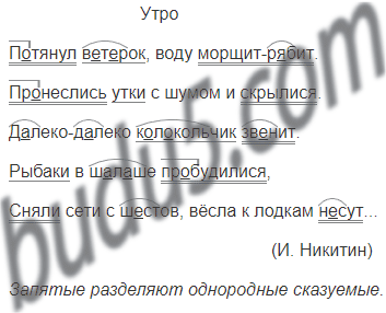 Прочитай стихотворение, представь картины, которые поэт нарисовал словами. Спиши, подчеркни грамматическую основу в каждом предложении. Объясни, что разделяют запятые.
