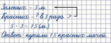 Купили 5 зелёных мячей, а красных в 3 раза больше. Сколько красных мячей купили?
