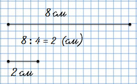 Начерти два отрезка: длина первого 8 мм, а длина второго в 4 раза больше.