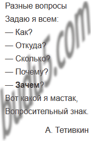 Прочитайте стихотворение А. Тетивкина ‹Вопросительный знак». Попробуйте дополнить его недостающим вопросом.