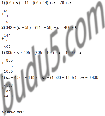 1) (56 + ) + 14;                        3) 805 + + 195;