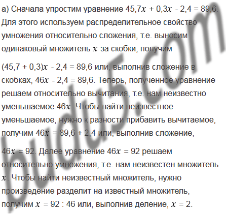 а) 45,7 + 0,3 - 2,4 = 89,6;