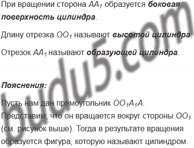 Объясните, что называют основанием, боковой поверхностью, высотой, образующей цилиндра.