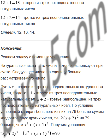 Найдите три последовательных натуральных числа, если удвоенный квадрат большего из них на 79 больше суммы квадратов двух других чисел.