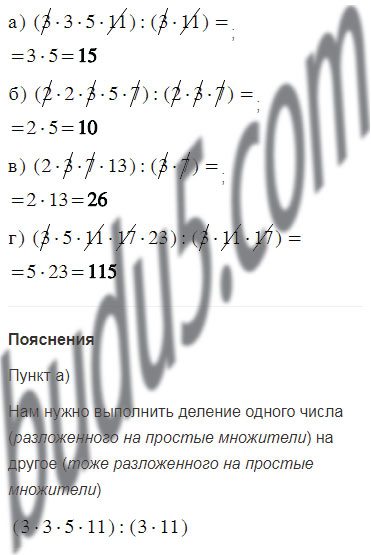 г) (3 ∙ 5 ∙ 11 ∙ 17 ∙ 23) : (3 ∙ 11 ∙ 17).