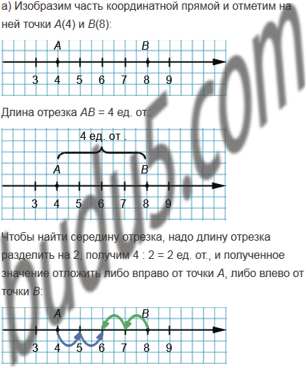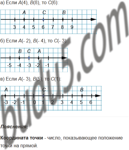 На координатной прямой отмечены точки А() и В(). Найдите координату середины С отрезка АВ, если: