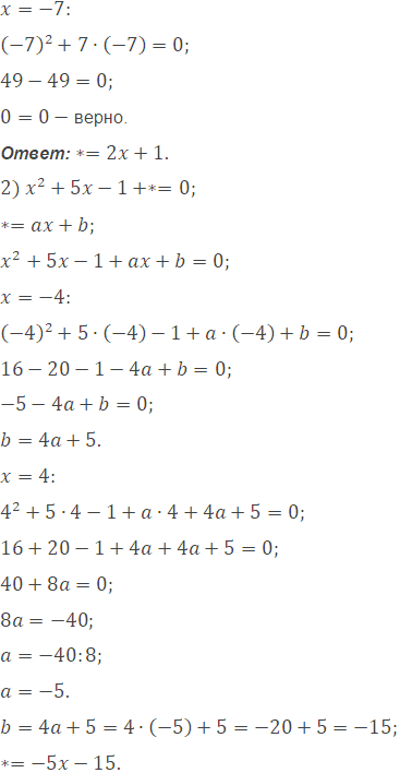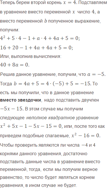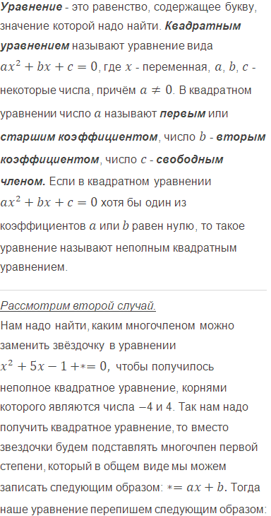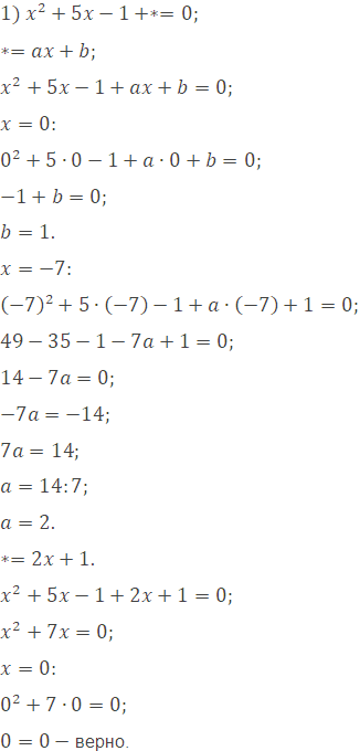 Каким многочленом можно заменить звёздочку в уравнении , чтобы получилось неполное квадратное уравнение, корнями которого являются числа:
