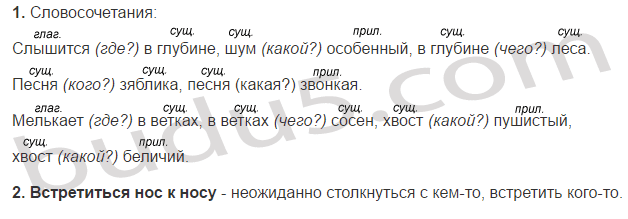 1. Выпишите словосочетания. Надпишите названия частей речи.