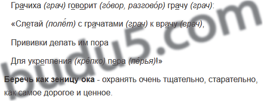 В скороговорке встречается орфограмма о безударной гласной в корне (грачиха, говорит, грачу, слетай, грачатами, врачу, укрепления, пера).